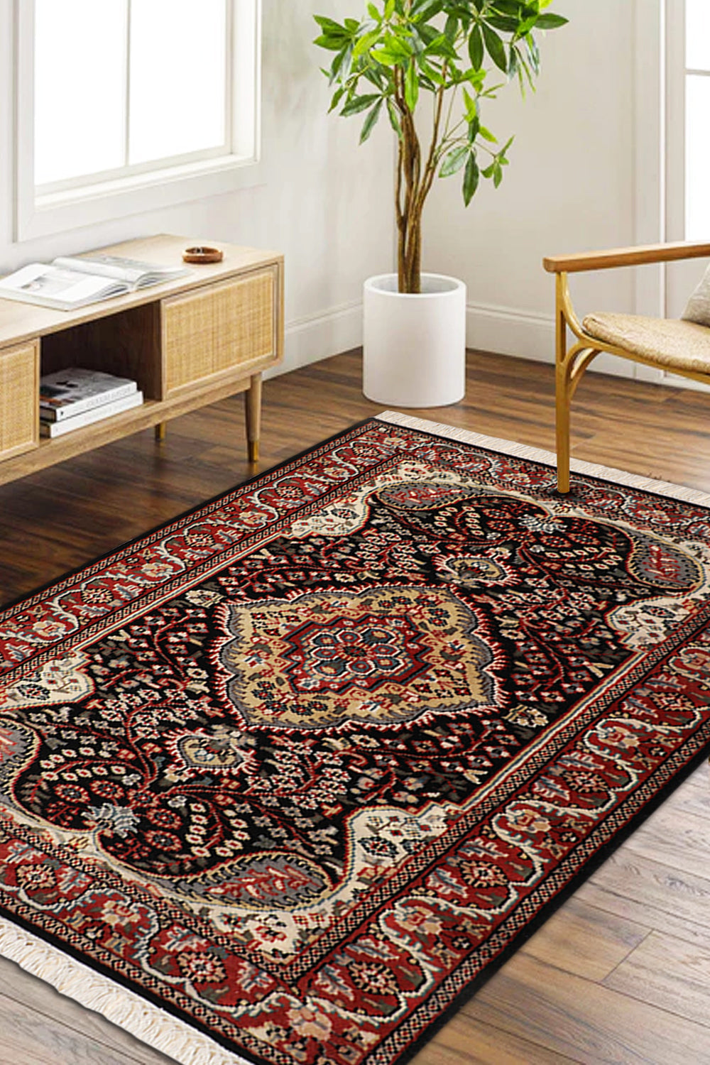 Elevate your home with this rectangular rug, where every knot weaves a story of historical richness and contemporary style. The Oriental floral and medallion design, rooted in Persian heritage, complements both traditional and modern interiors with its detailed artistry. Ideal for today’s homes, it blends durability with a cozy aesthetic, creating a warm yet refined focal point. Its deep tones enhance any room, infusing it with a sense of cultural depth and understated sophistication. Discover a rug that connects timeless traditions with modern living spaces.