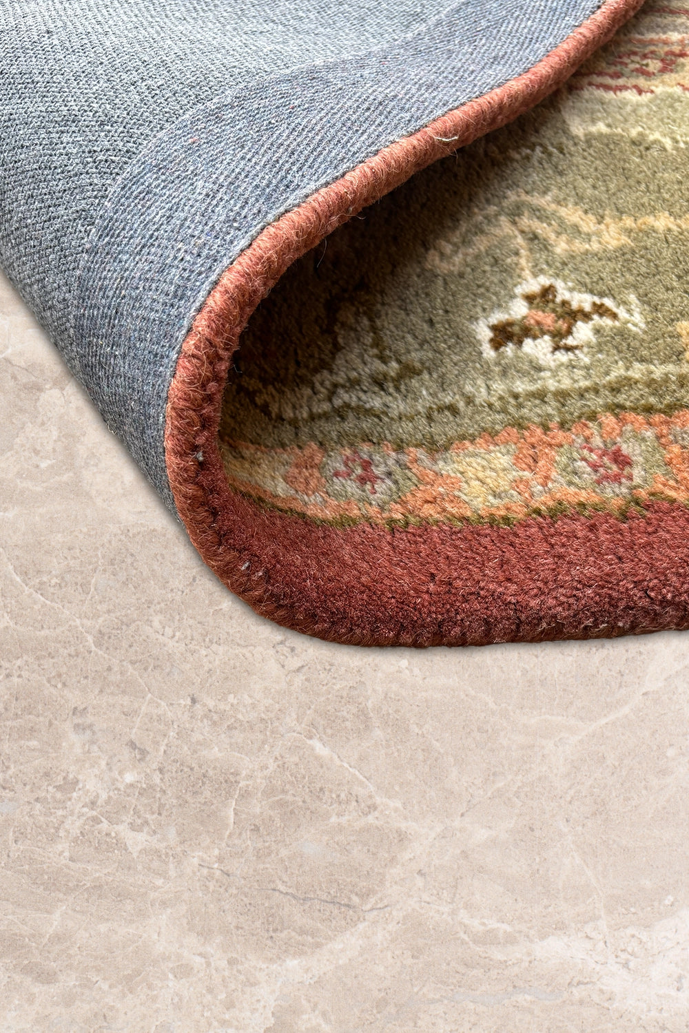 KR00516 Brick red/olive Green Hand Tufted Wool Rug
